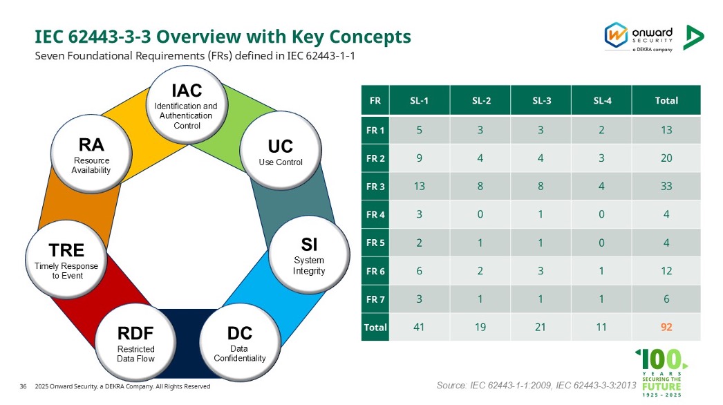 IEC 62443-3-3標準提出「七大基礎安全需求」(Seven Foundational Requirements,FR),為工業控制系統資安建立核心架構: